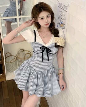 Lace court style skirt slim tops 2pcs set