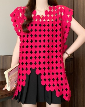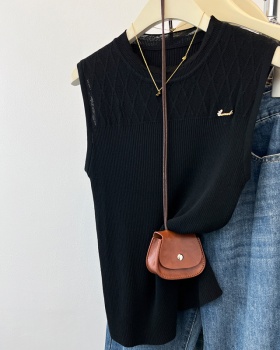 Enticement stand collar crochet vest lace slim tops