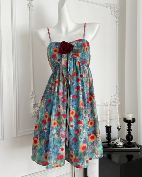 Lady tender high waist chouzhe sling summer pink halter dress