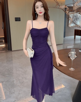 Sling formal dress lotus leaf edges dress