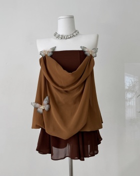 Rib fleece T-shirt strapless plus velvet tops for women