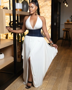 Hollow vacation light-blue long dress summer sexy dress