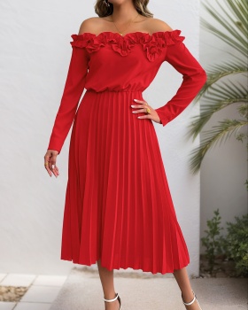 Pinched waist lantern sleeve sexy skirt a set for women