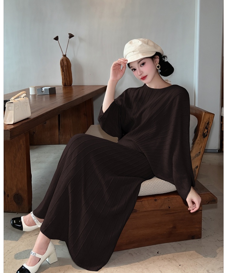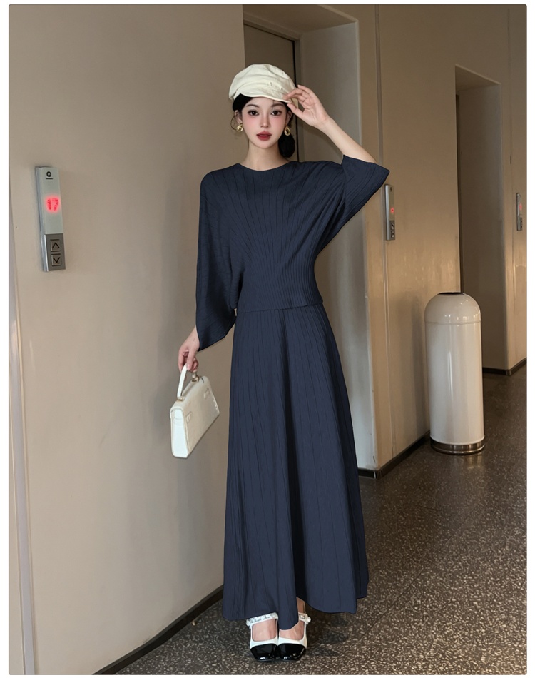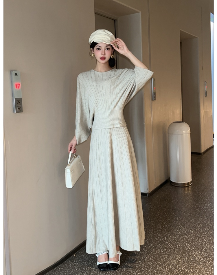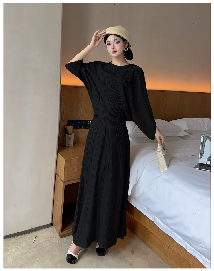 All-match fashion skirt pleated autumn sweater 2pcs set
