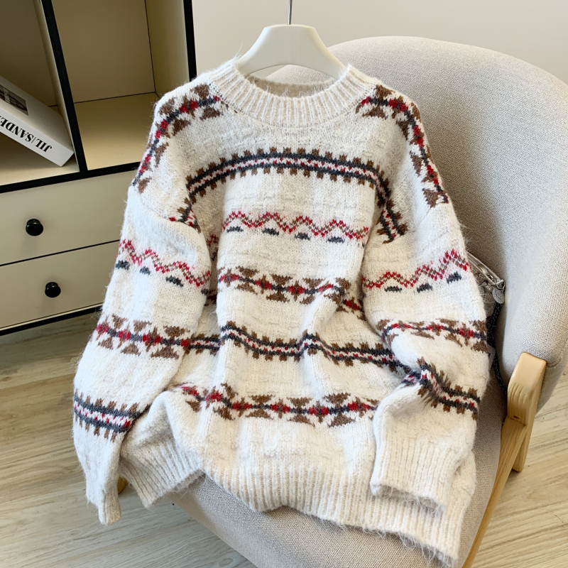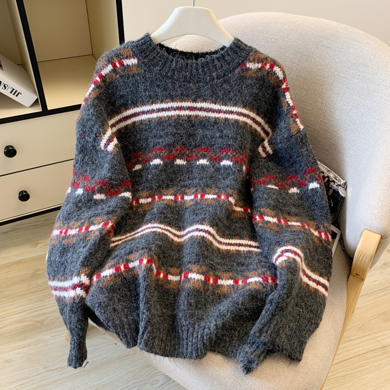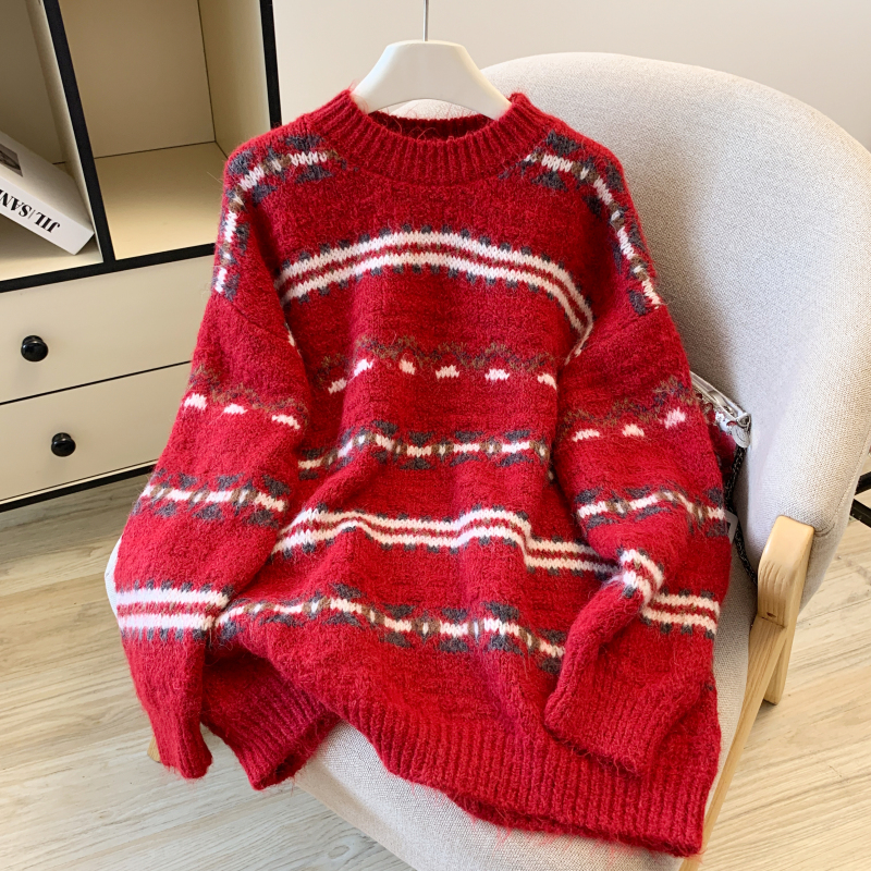 Loose middle-aged Casual sweater V-neck thin stripe tops
