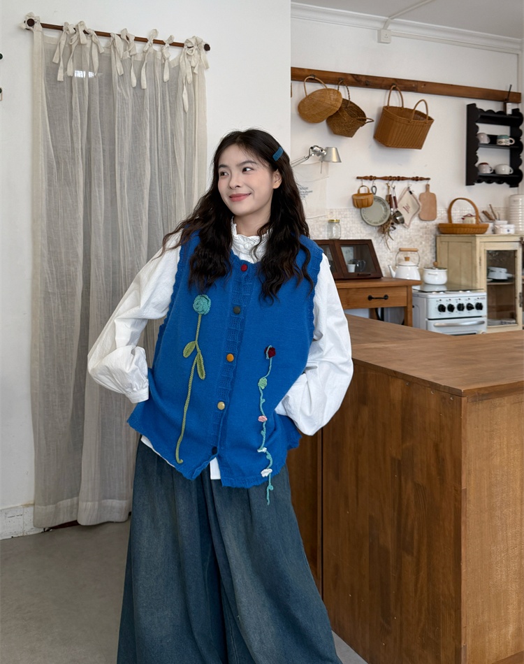 Art loose sweater embroidered waistcoat for women
