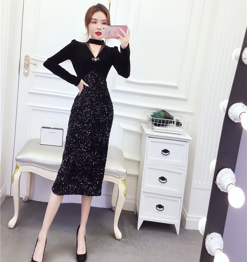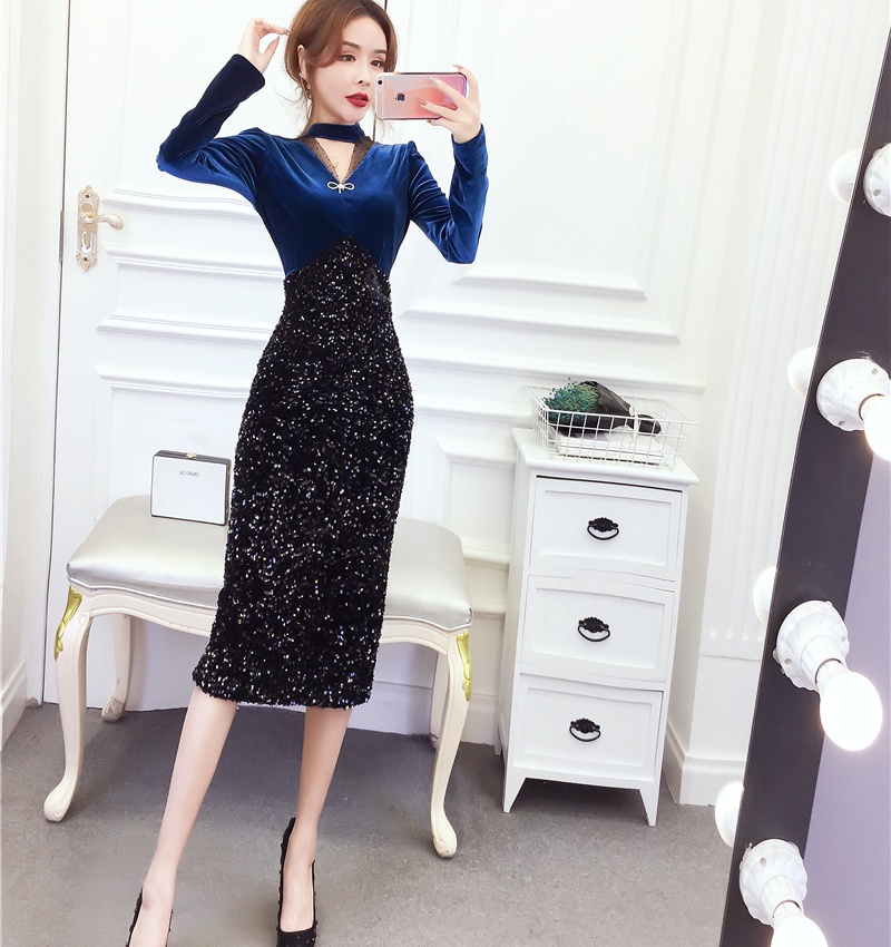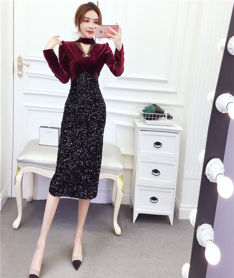 Lace fashion sexy dress splice long sleeve retro cheongsam