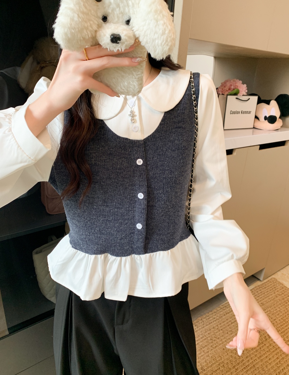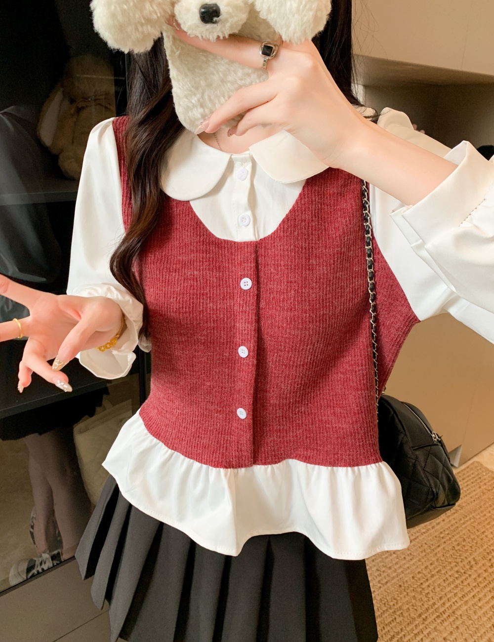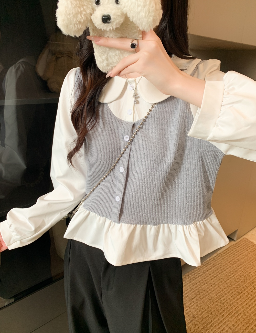 Korean style tops splice small shirt for women