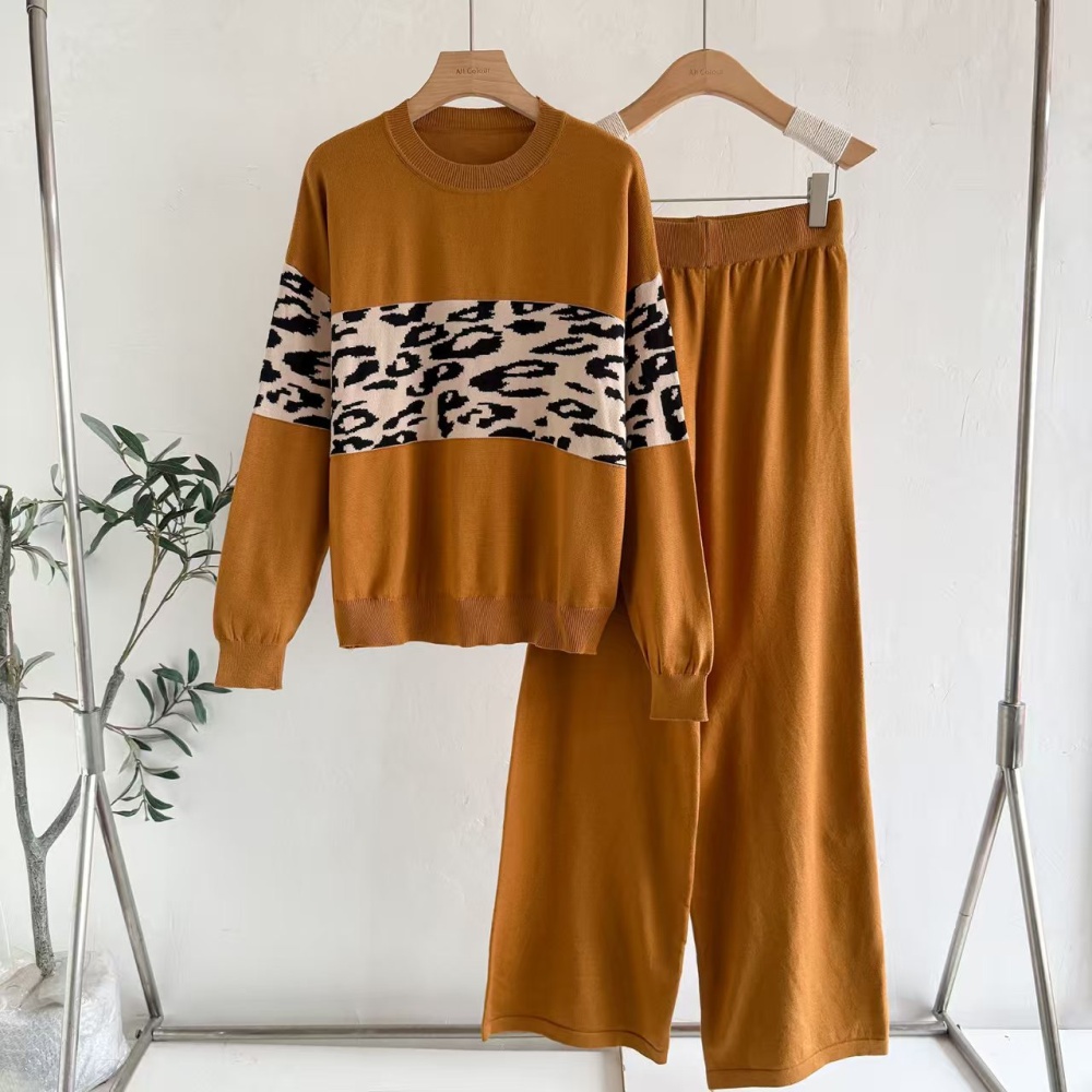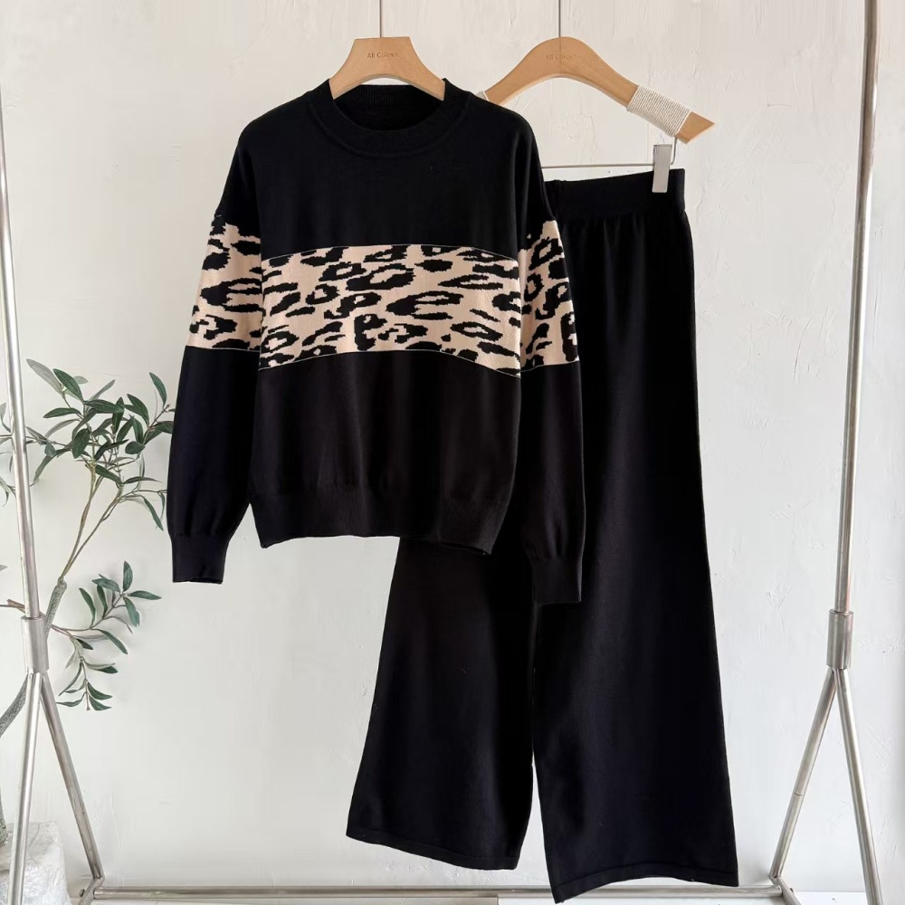 Burning flowers wide leg pants hollow tops 2pcs set for women