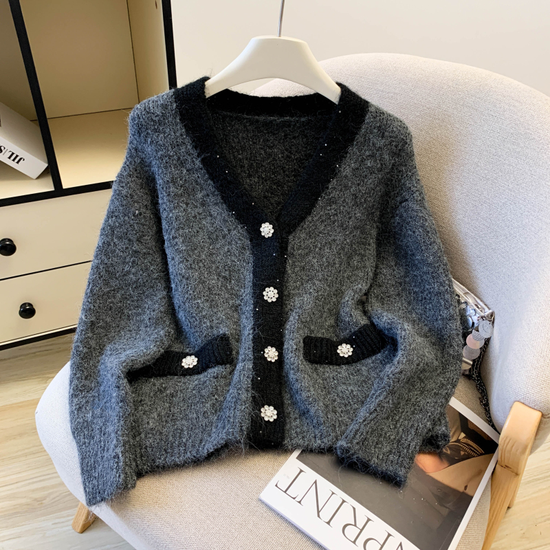 Mink velvet lazy spicegirl tops hollow retro sweater