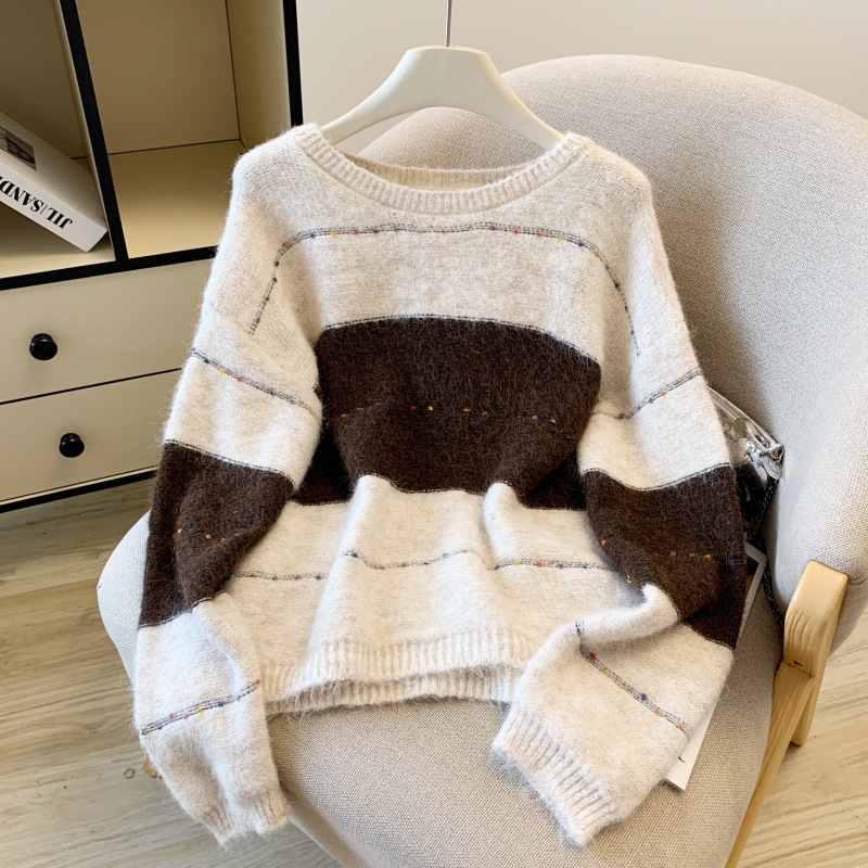Ostrich hair knitted temperament lapel flat shoulder tops