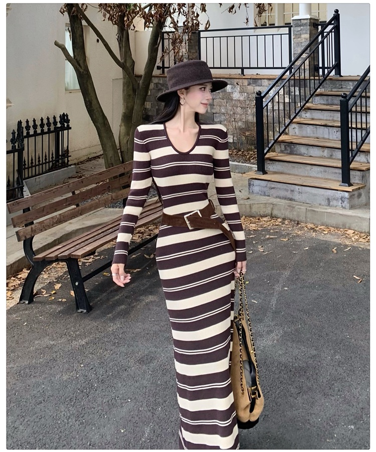 Lantern sleeve buckle with belt splice long rhinestone dress