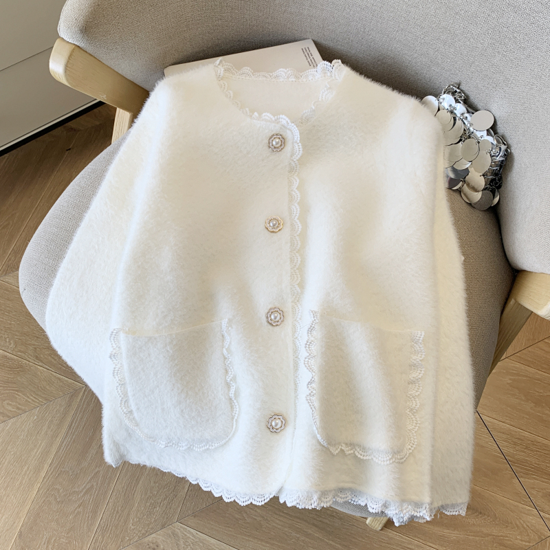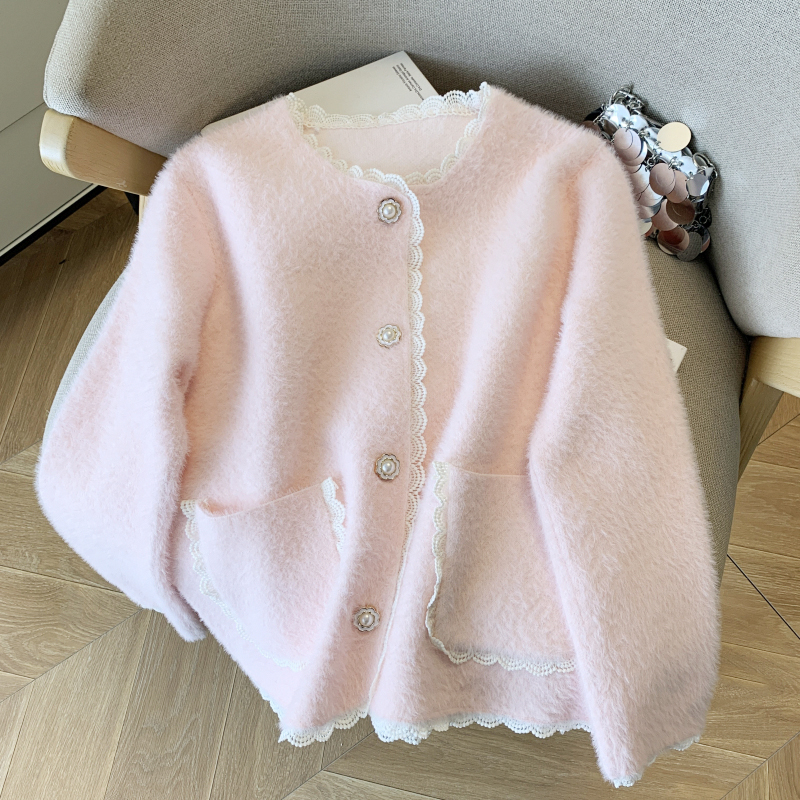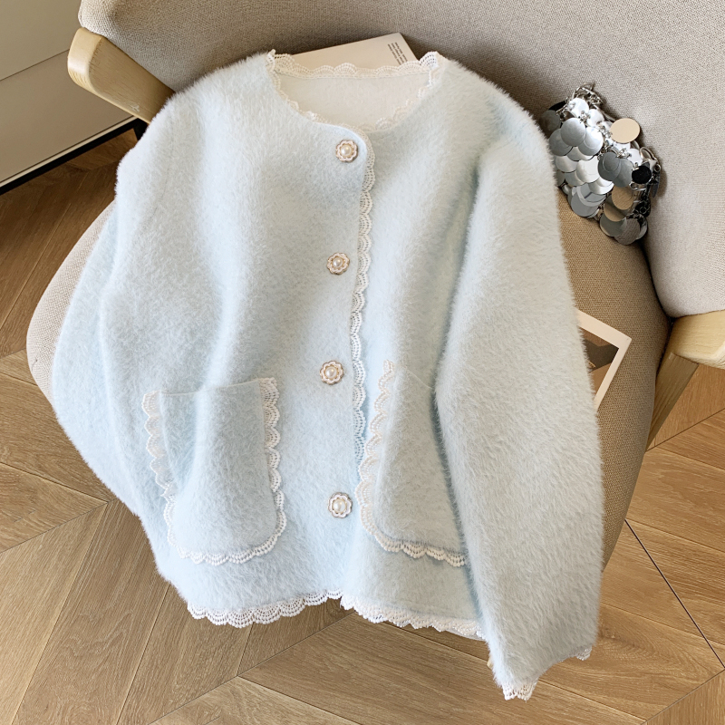 Lazy thick gray V-neck tops knitted niche twist sweater