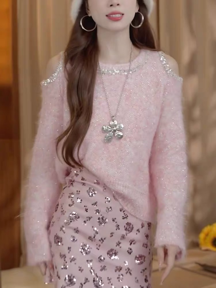 Chanelstyle knitted tops long sleeve sweater for women