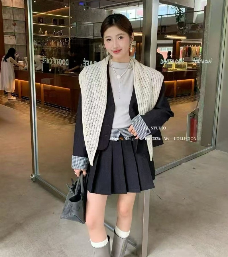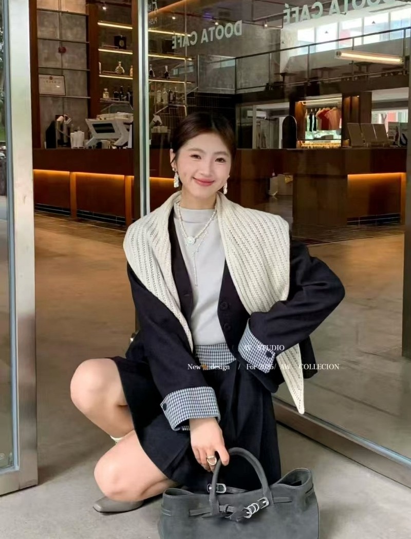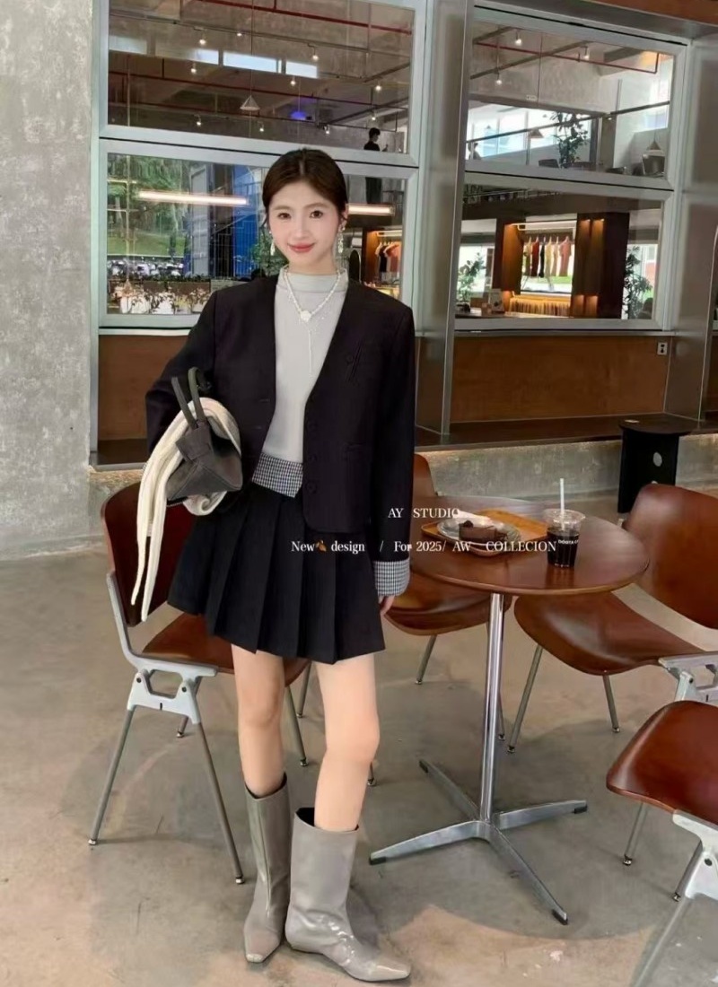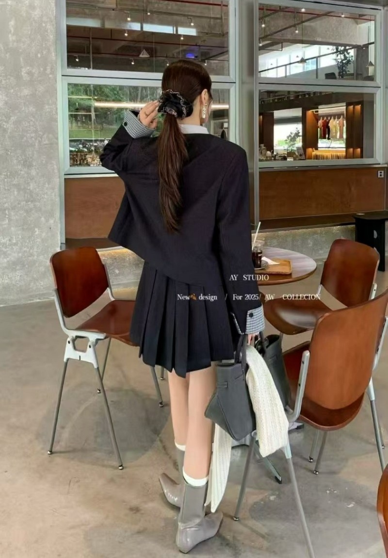 Lapel spicegirl coat niche short skirt 2pcs set for women