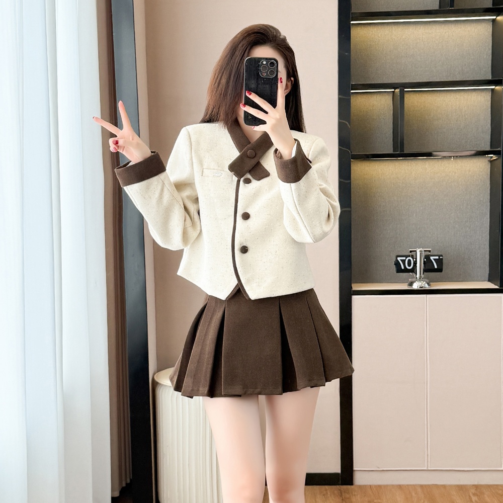 Cross collar Western style jacket chanelstyle short skirt 2pcs set