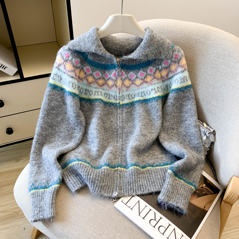 Twist mohair sweater knitted lazy coat
