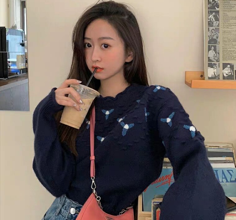Embroidery crochet pullover France style sweater for women
