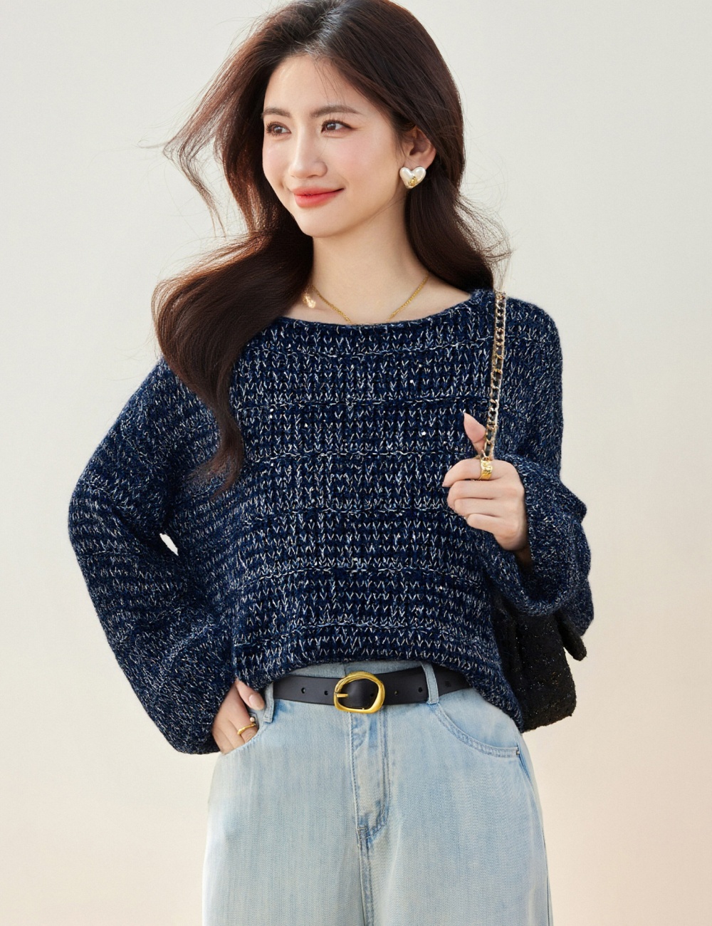Crimp slim Pseudo-two knitted gray bottoming shirt