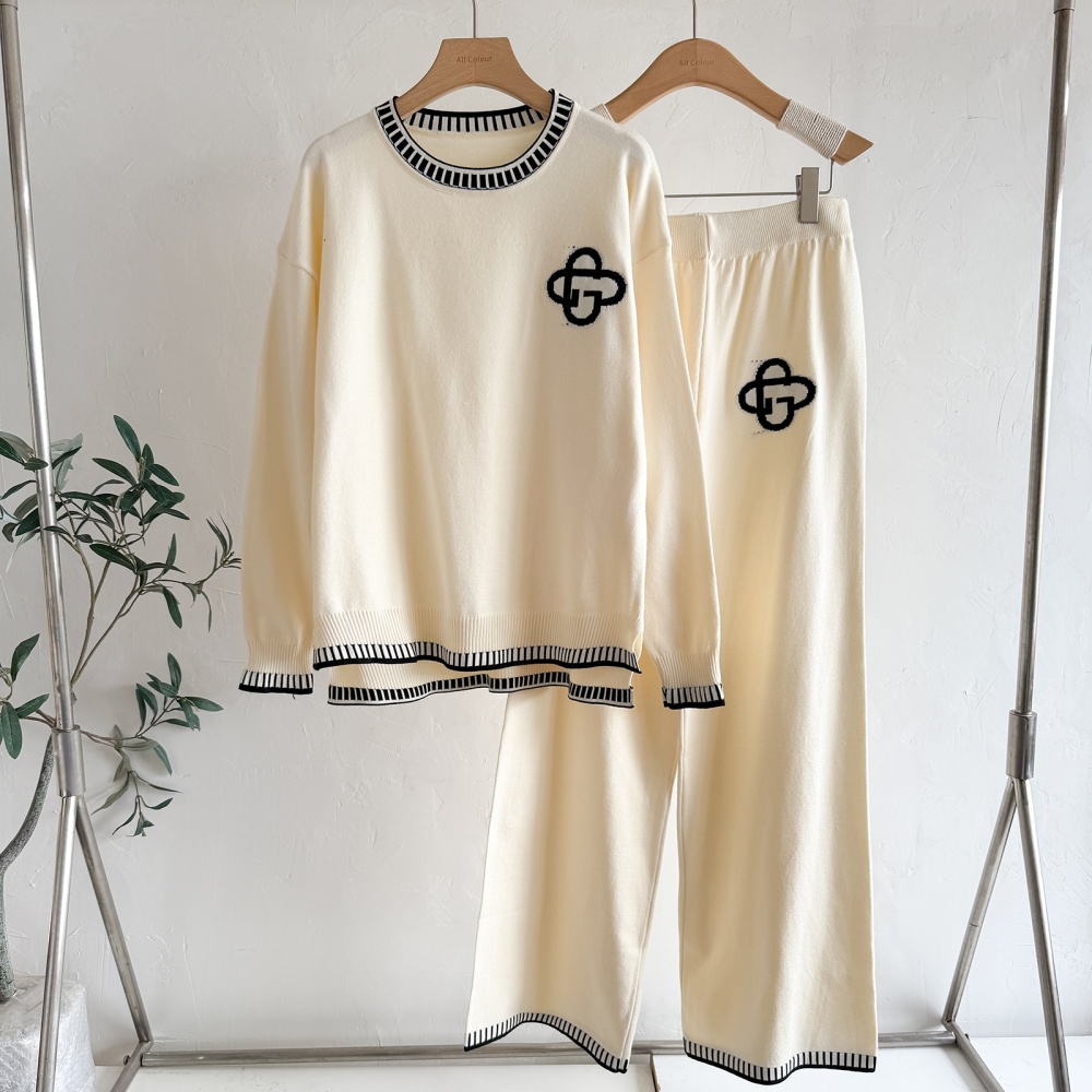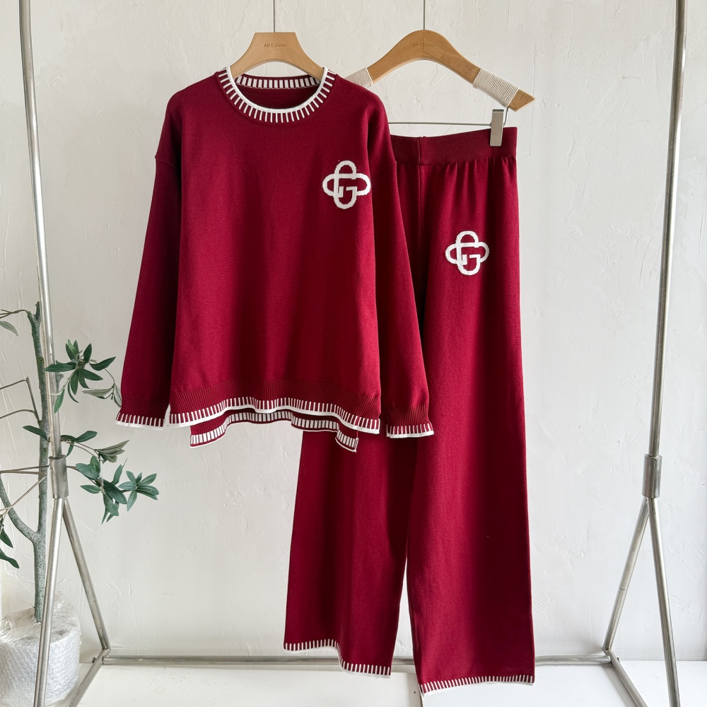 Casual wide leg pants sweater 3pcs set for women