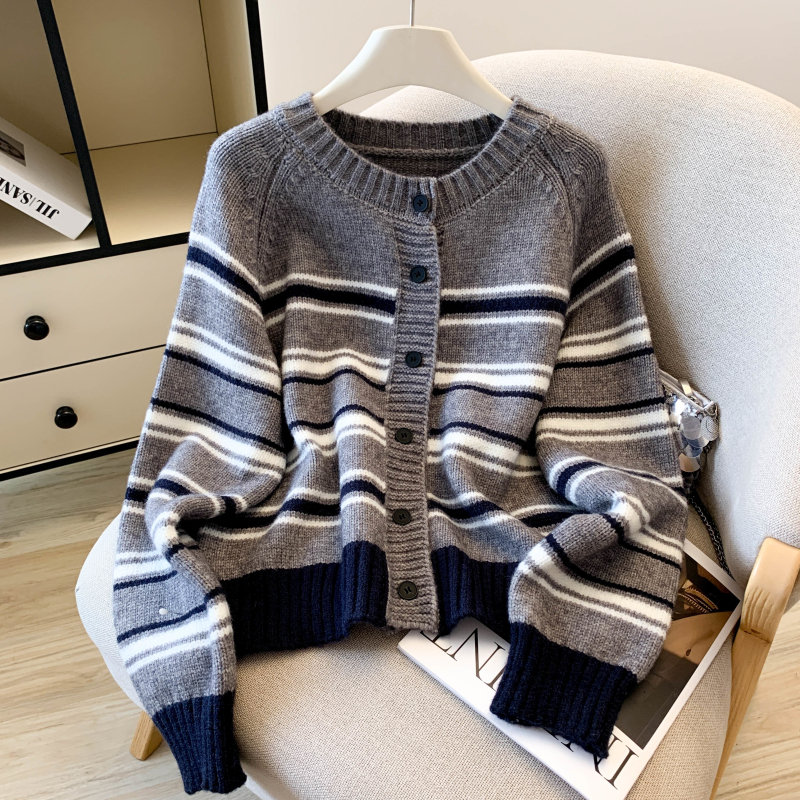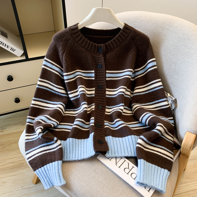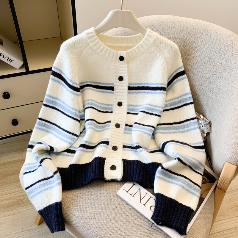 Fashion stripe coat single-breasted sweater
