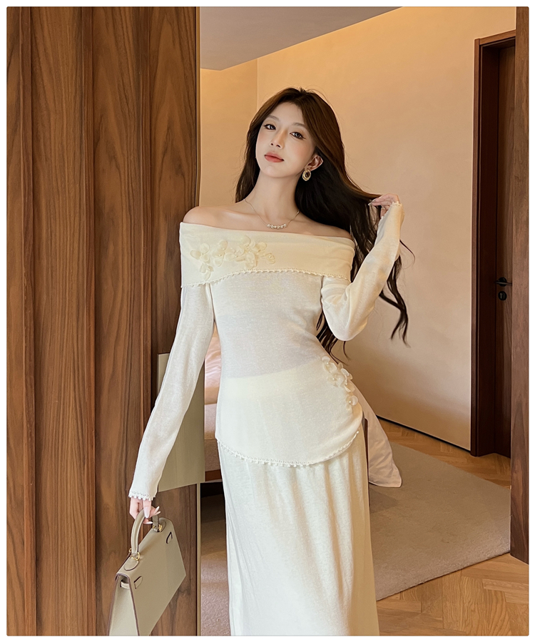 Fashion light luxury lace slim hollow skirt a set