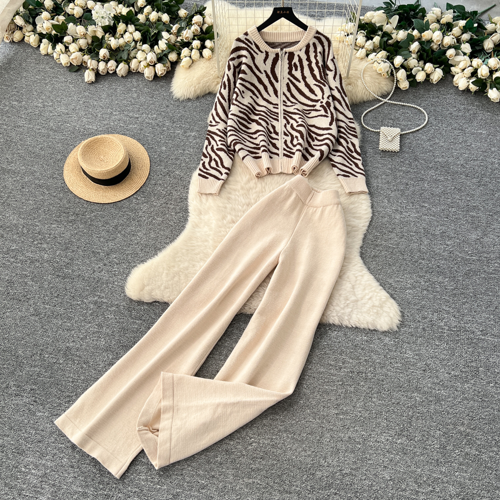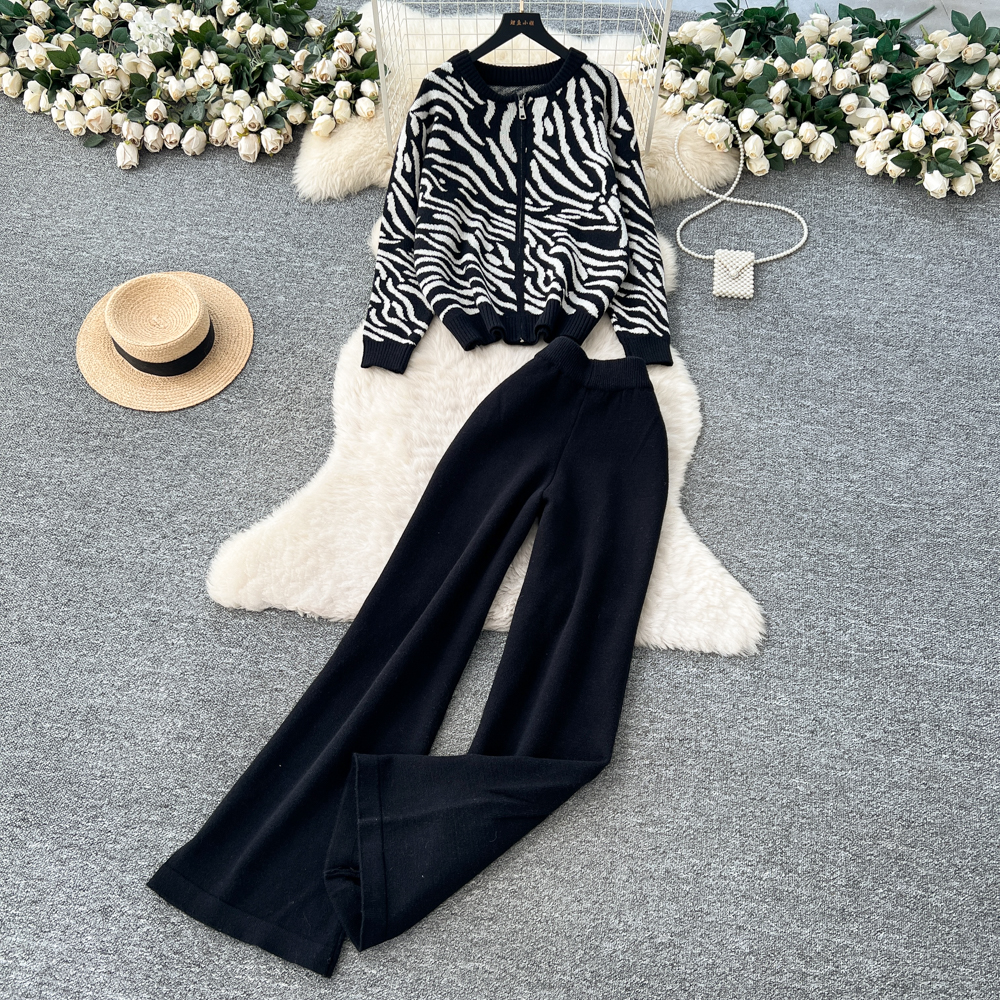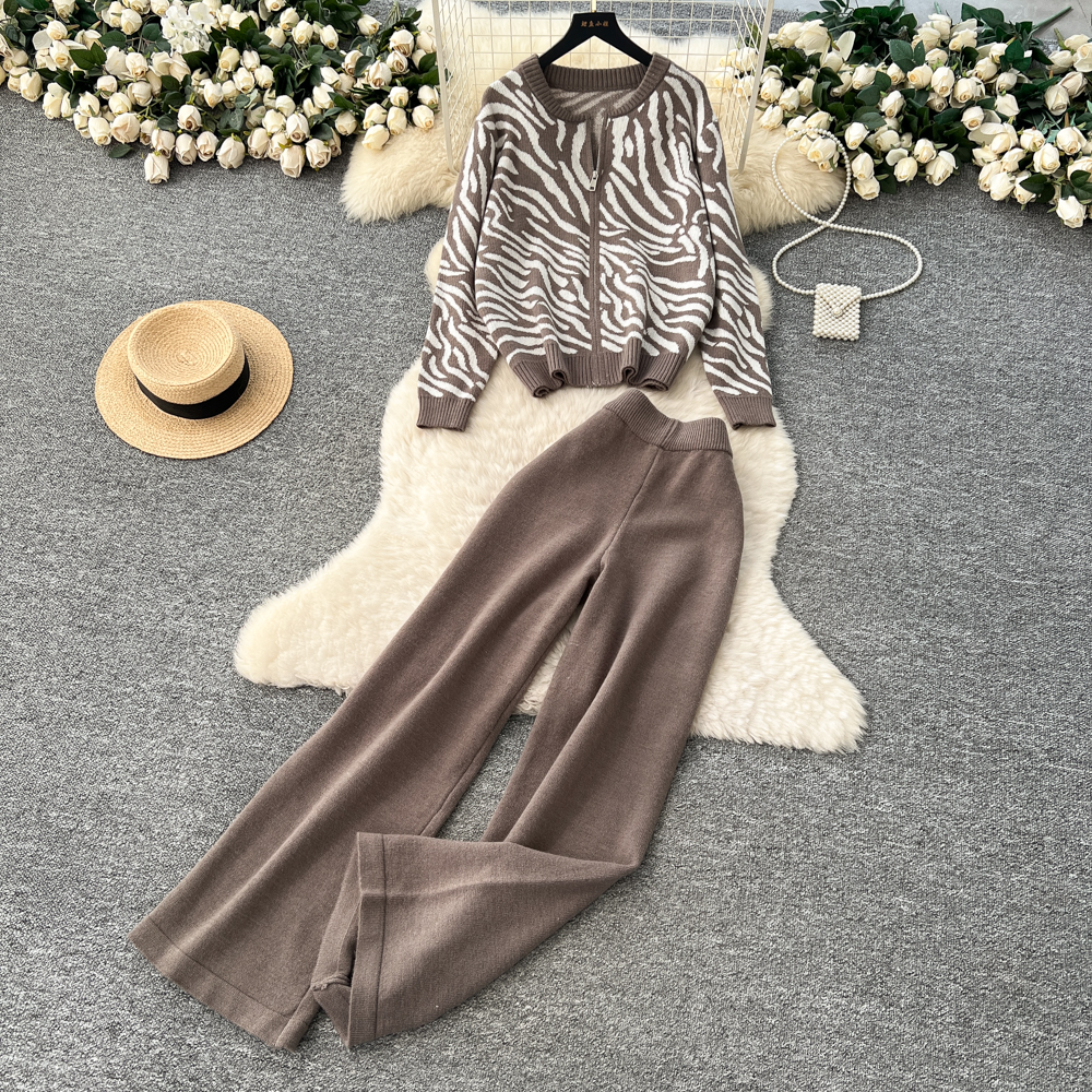 Casual wide leg pants sweater 3pcs set for women
