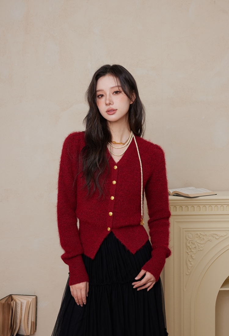 France style retro sweater winter red cardigan for women