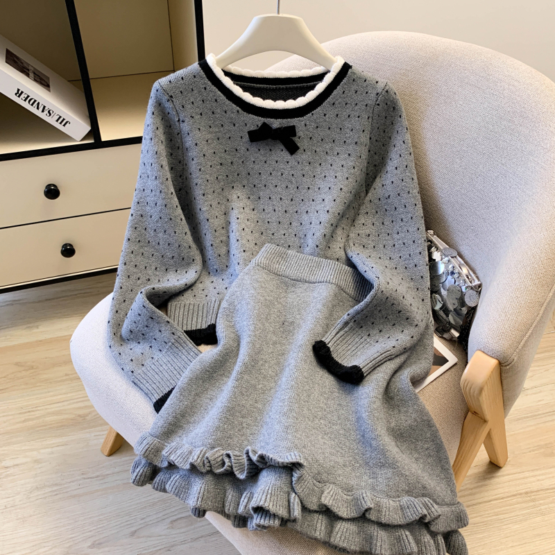 France style short skirt sweater 2pcs set for women