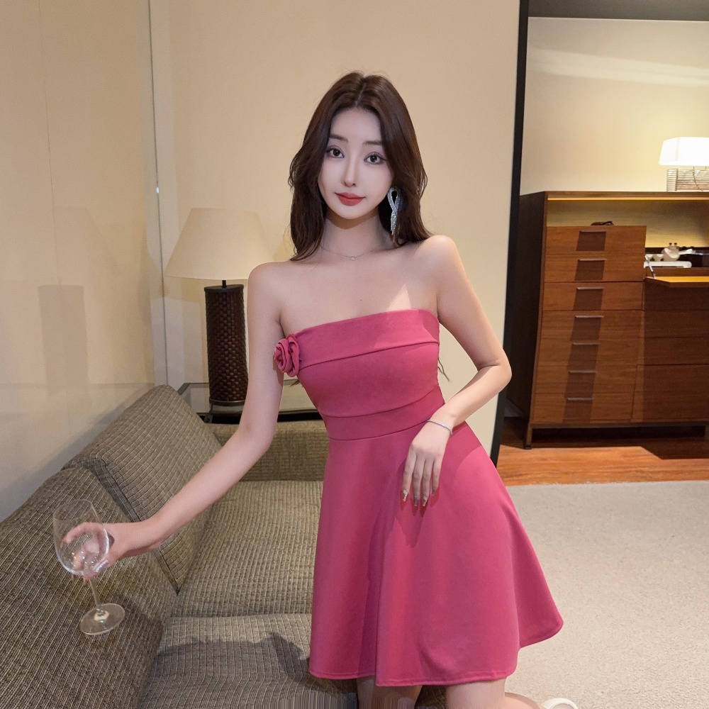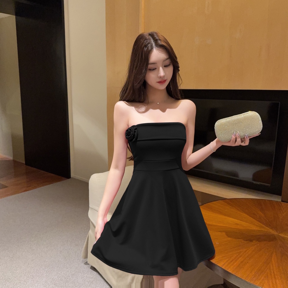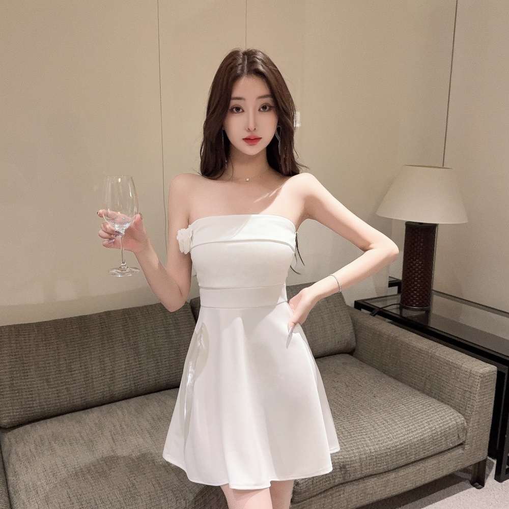 Horizontal collar pinched waist big skirt halter spicegirl dress