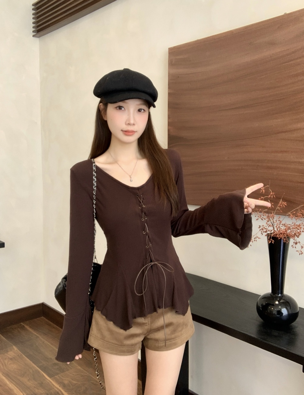 Irregular temperament bottoming shirt bandage autumn tops