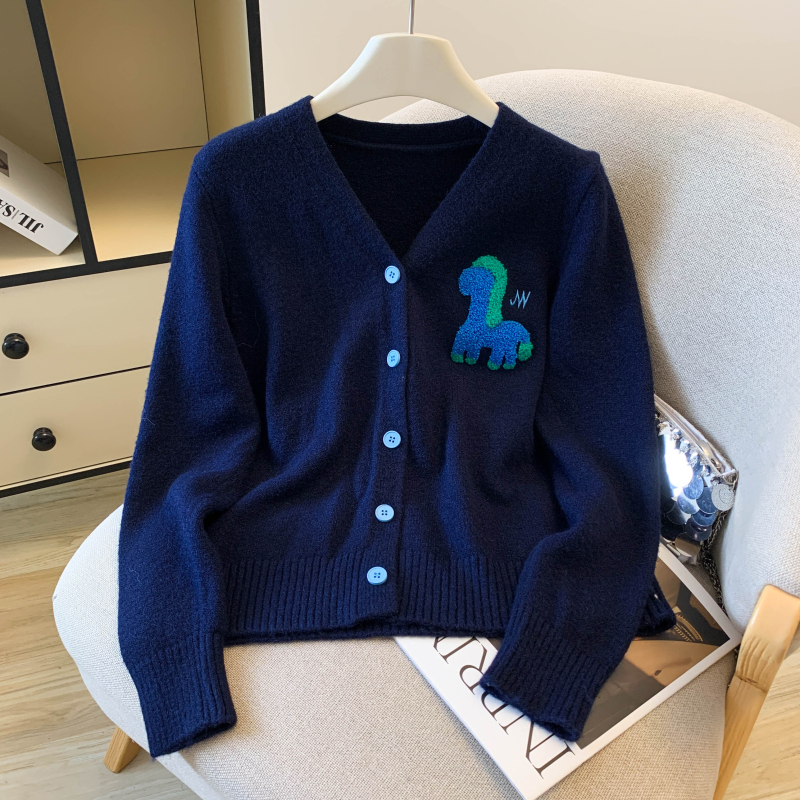 Korean style autumn and winter tops splice round neck cardigan