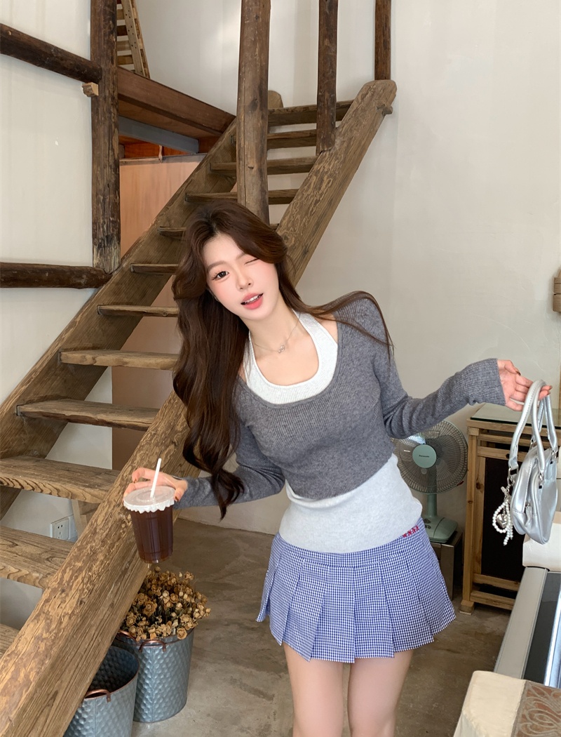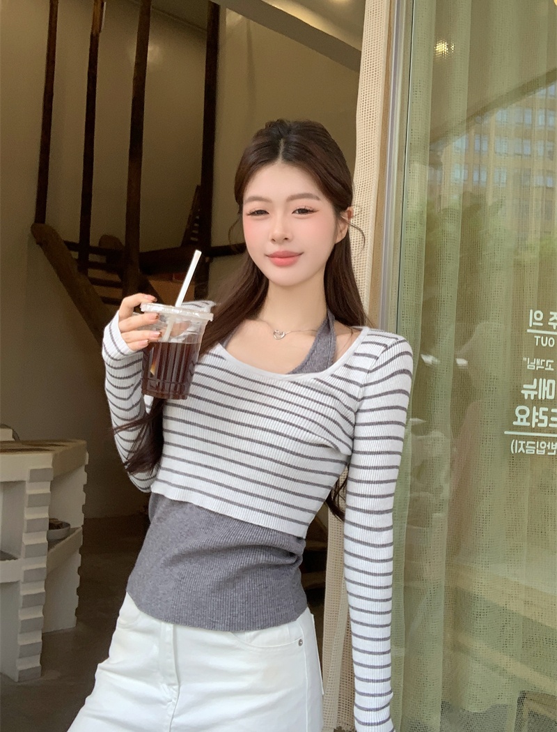 Korean style long sleeve sweater sling tops 2pcs set for women