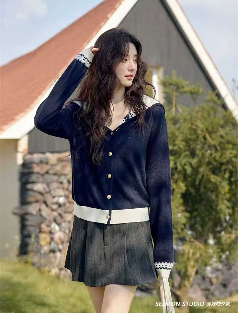 Pseudo-two sweater temperament tops for women