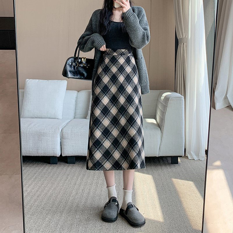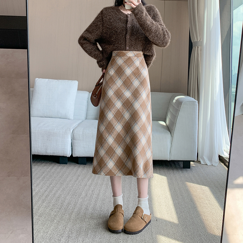 Drape chiffon high waist long skirt A-line splice slim skirt