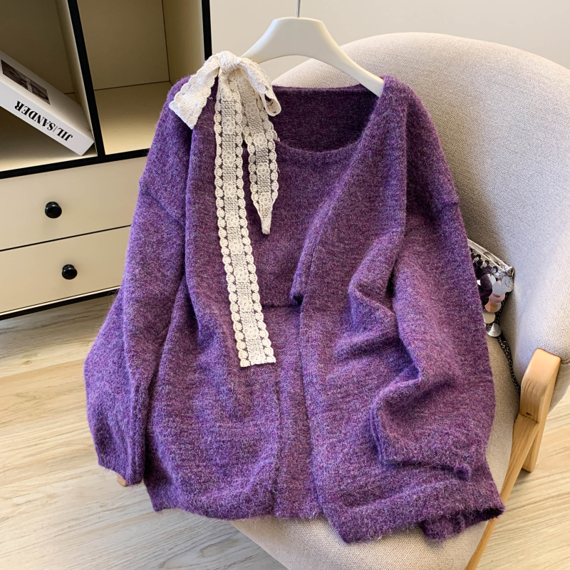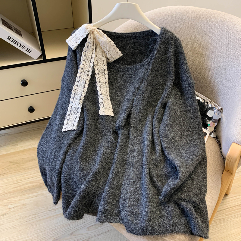 Slim all-match autumn round neck tops wool pullover gray sweater