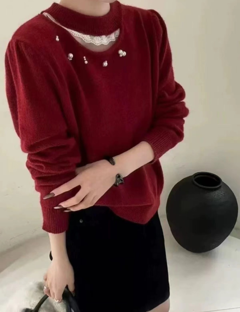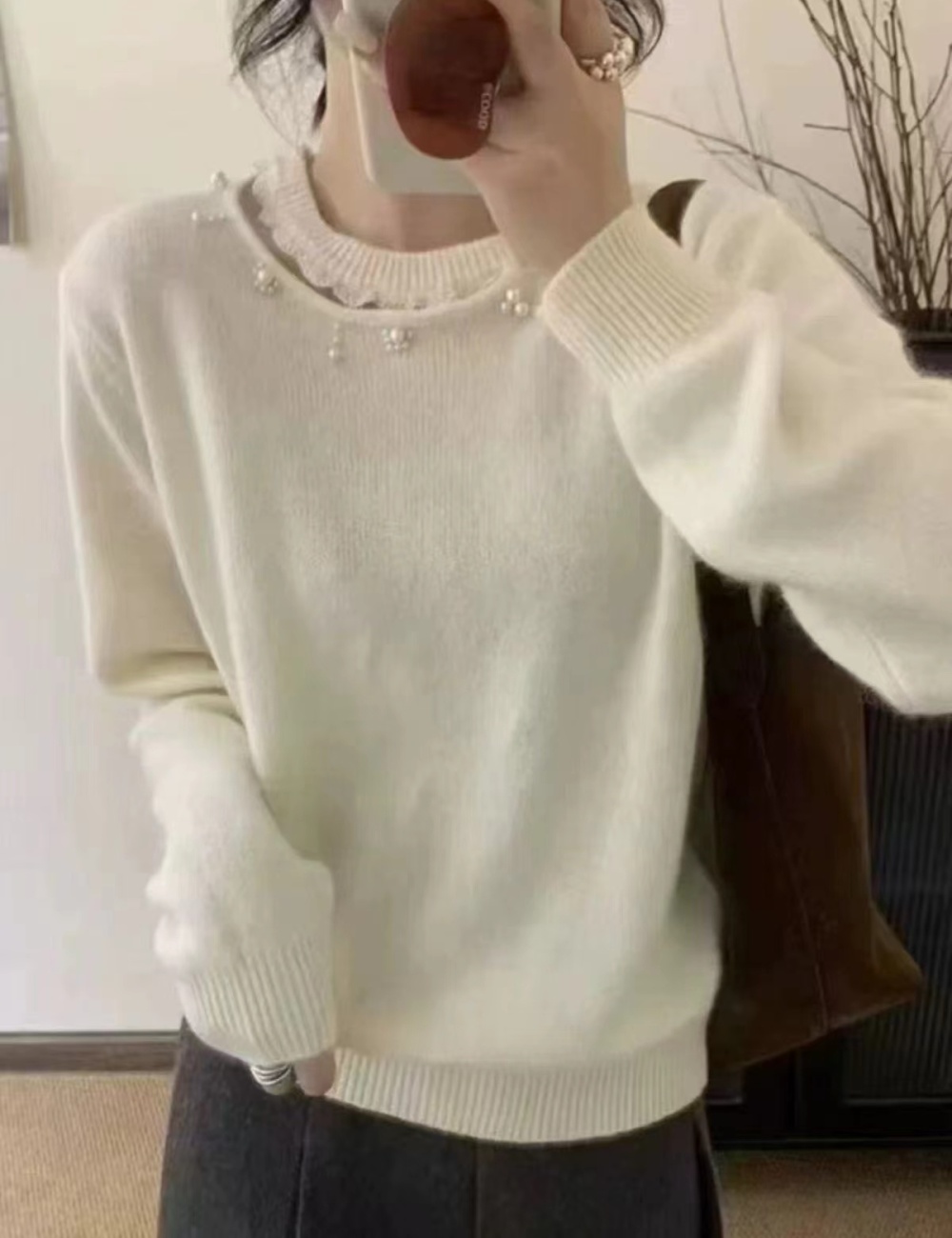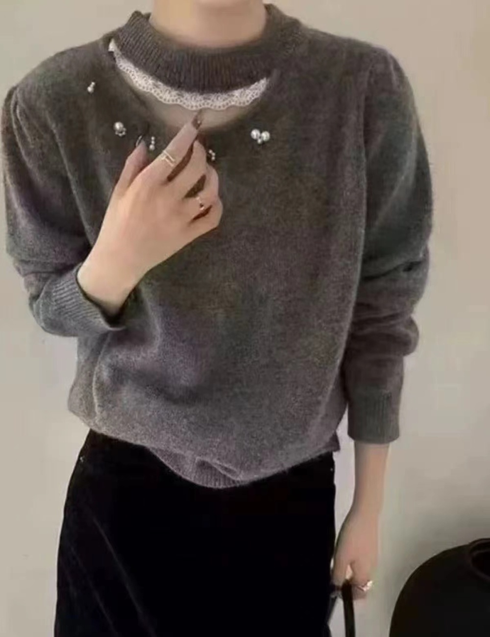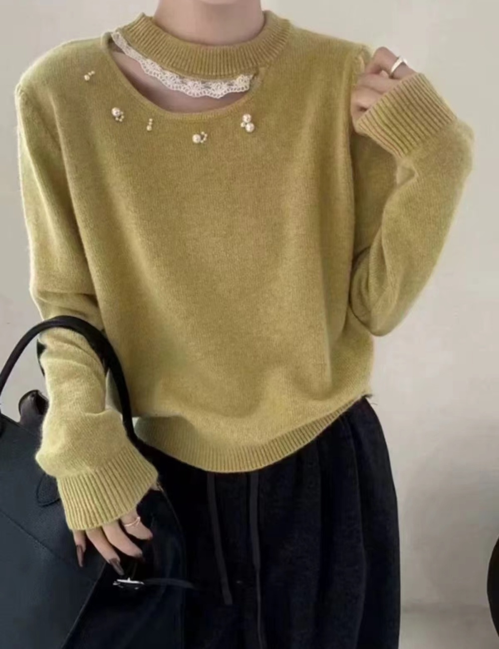Bat sleeve spring and autumn coat hollow V-neck sweater