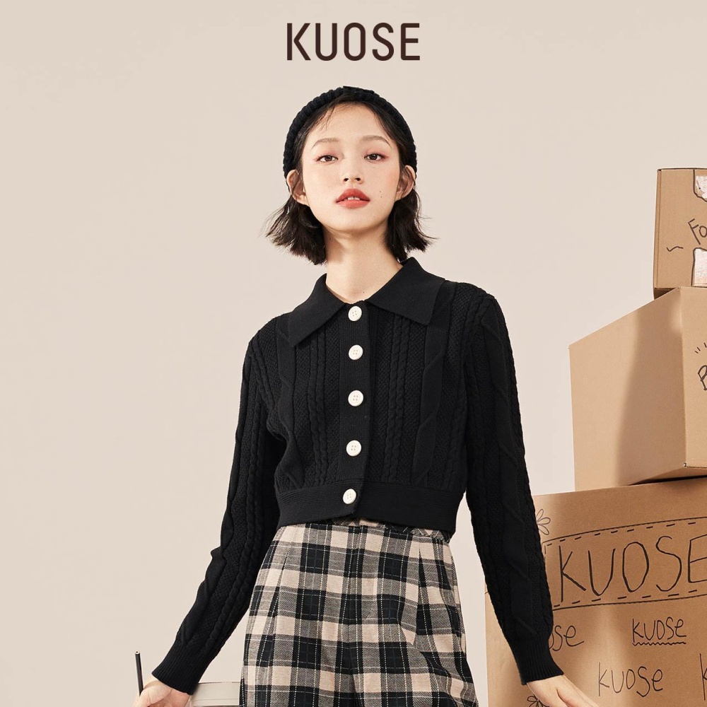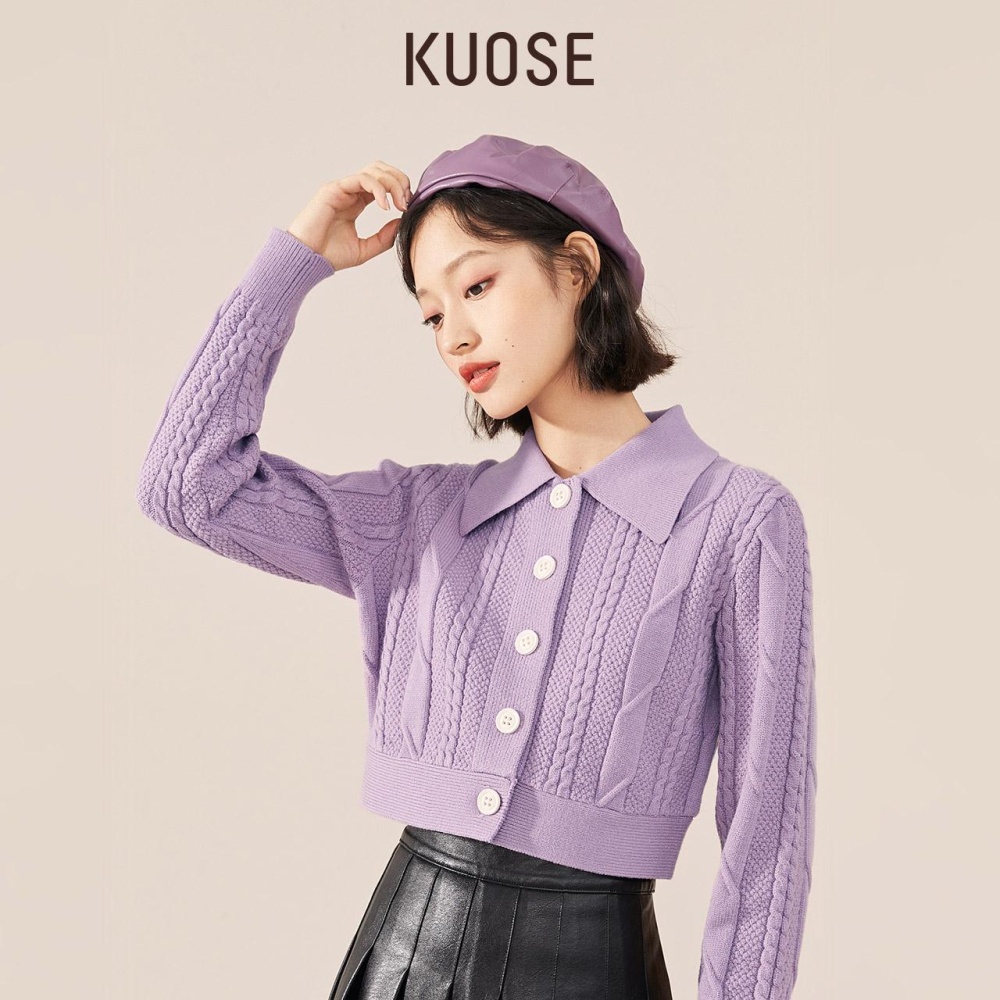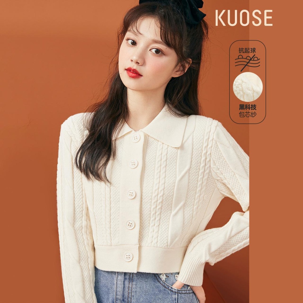 Lapel retro slim sweater lazy short cardigan for women