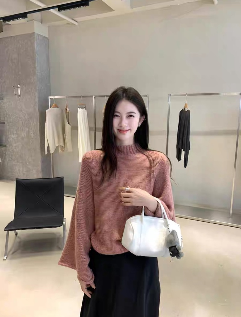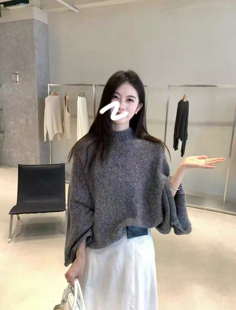 Lazy half high collar cloak bat sleeve sweater for women