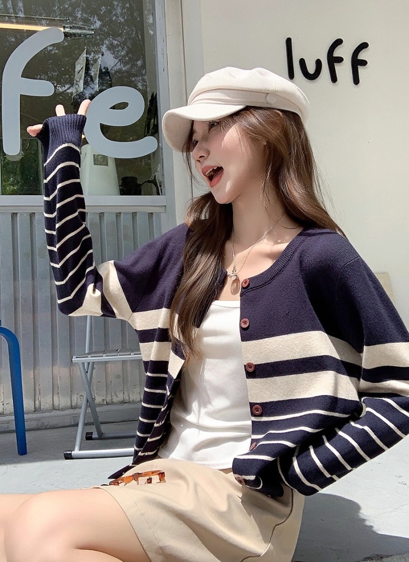Navy collar coat mixed colors sweater for women