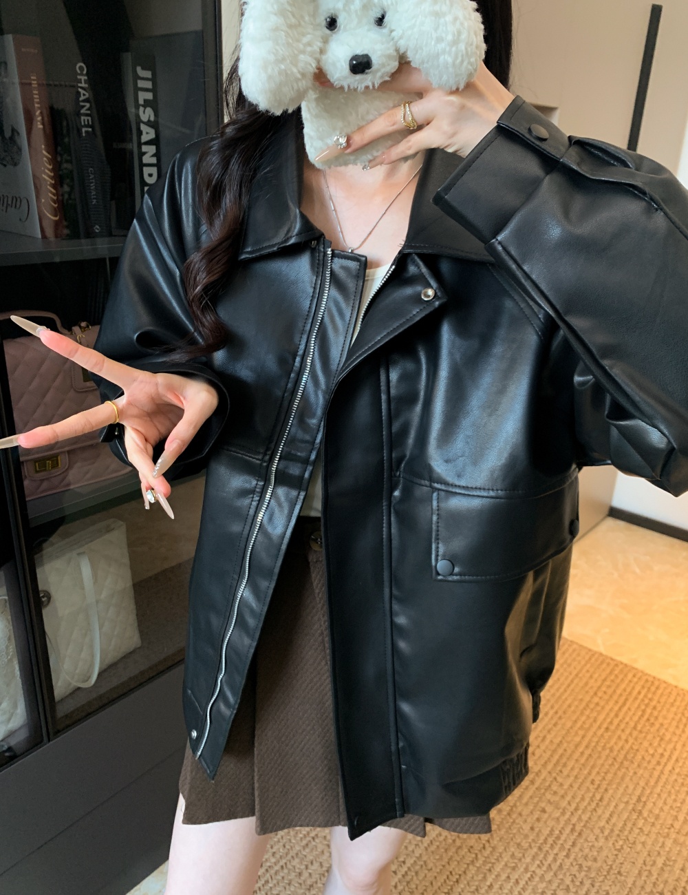 Long sleeve short V-neck art jacket thin retro Casual coat