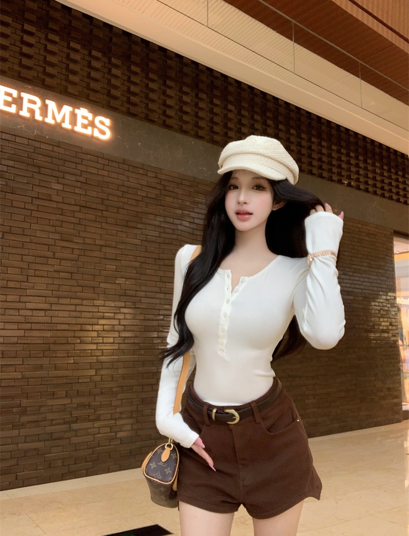 Slim long sleeve autumn tops Pseudo-two hollow T-shirt