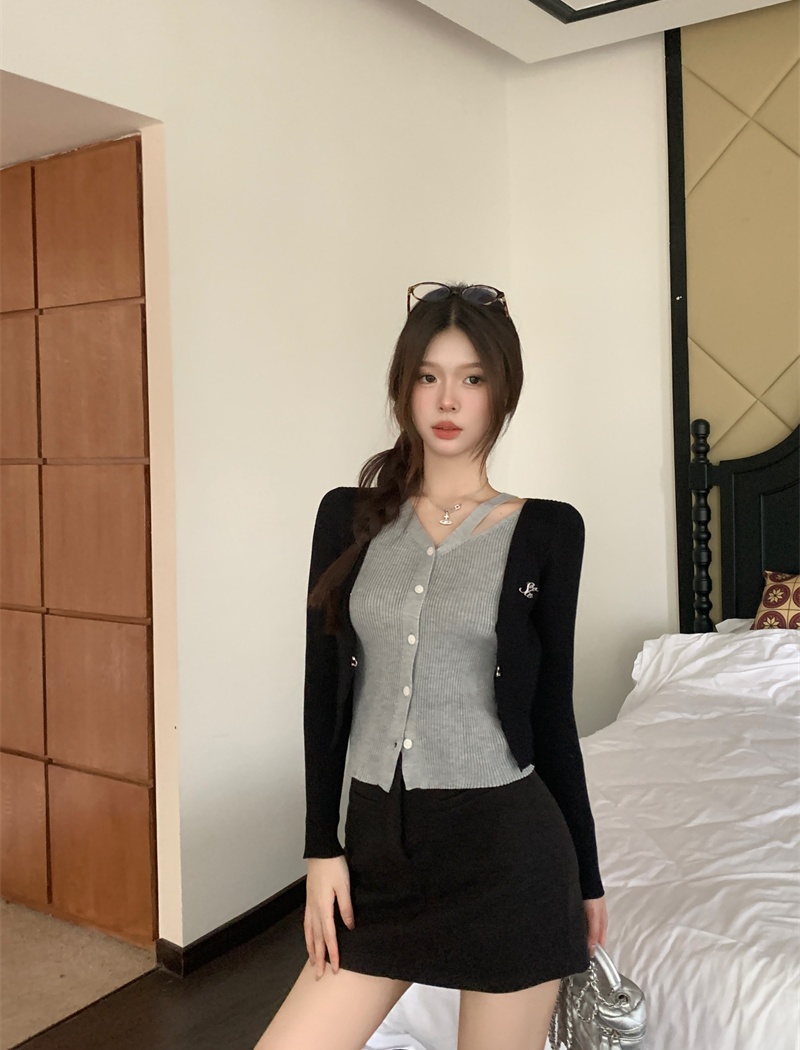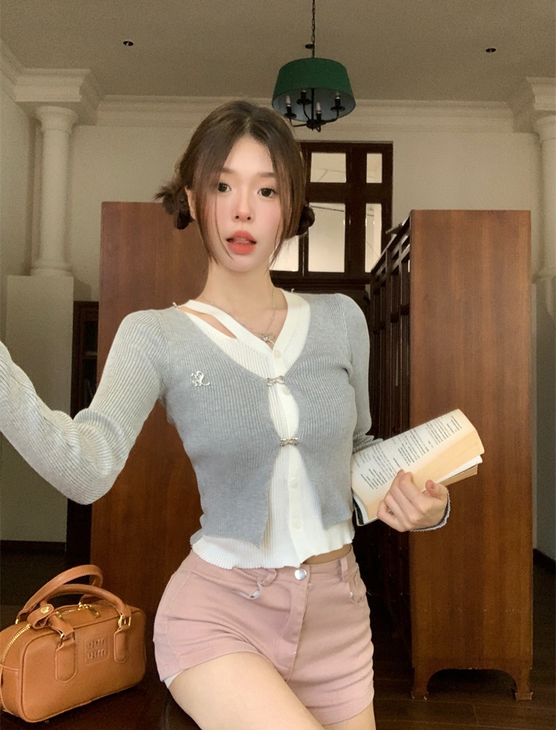 Pseudo-two long sleeve autumn tops niche slim sweater