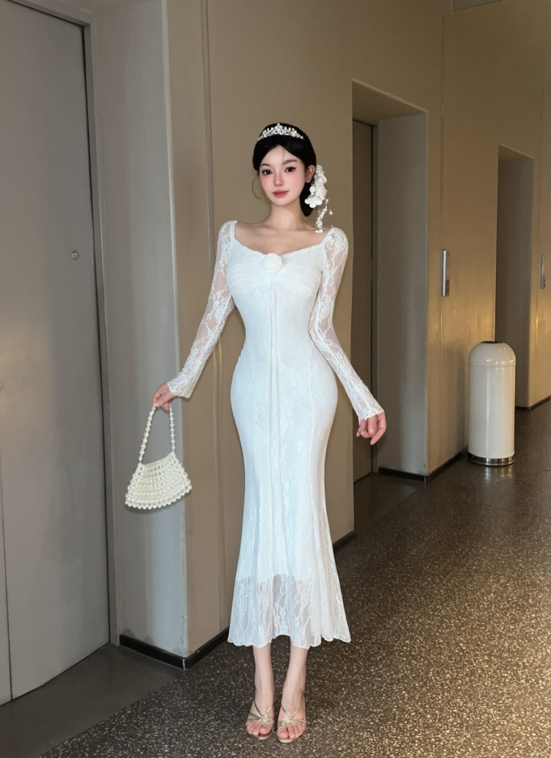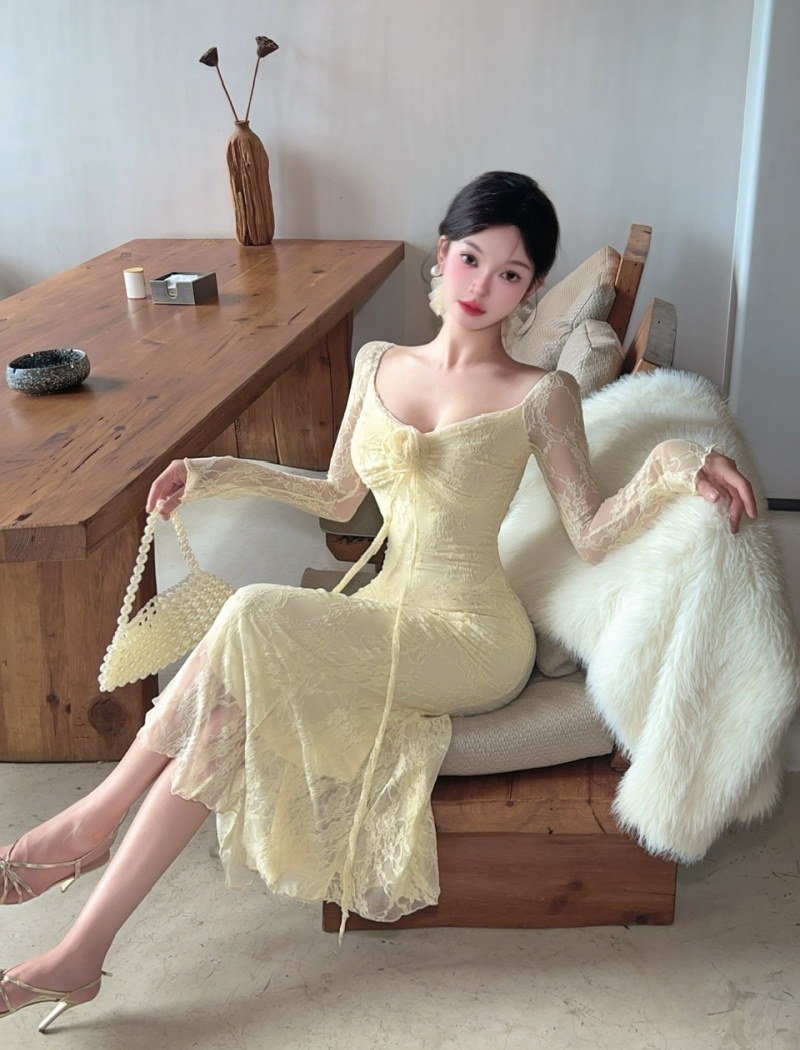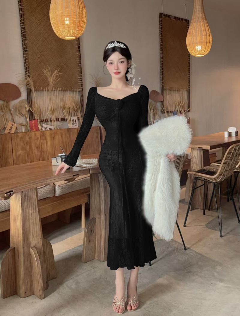 Long sleeve temperament dress package hip long dress