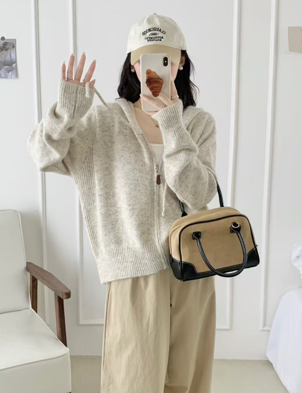Loose hooded shirts slim Korean style cardigan