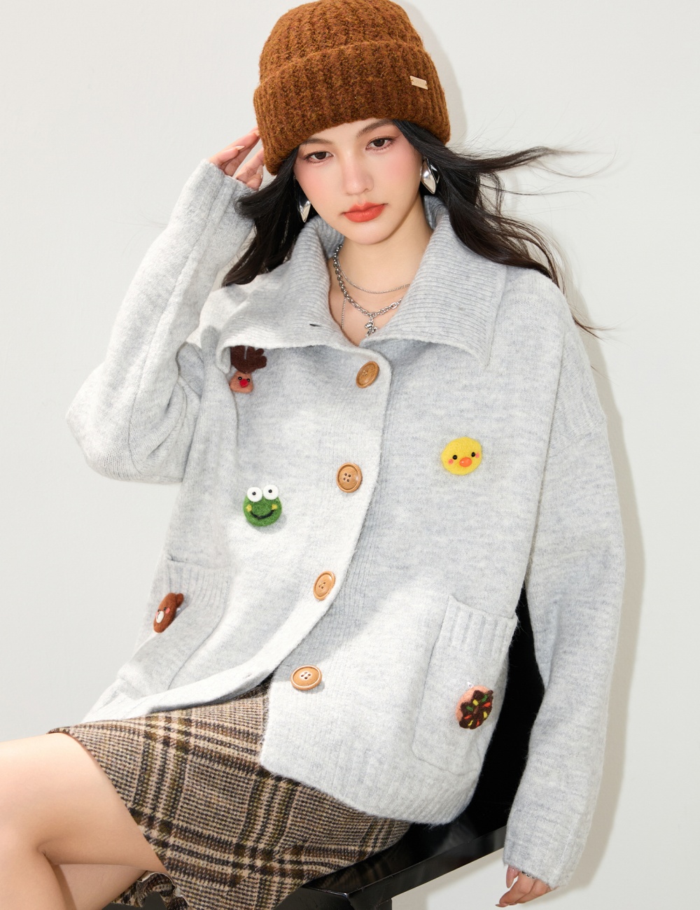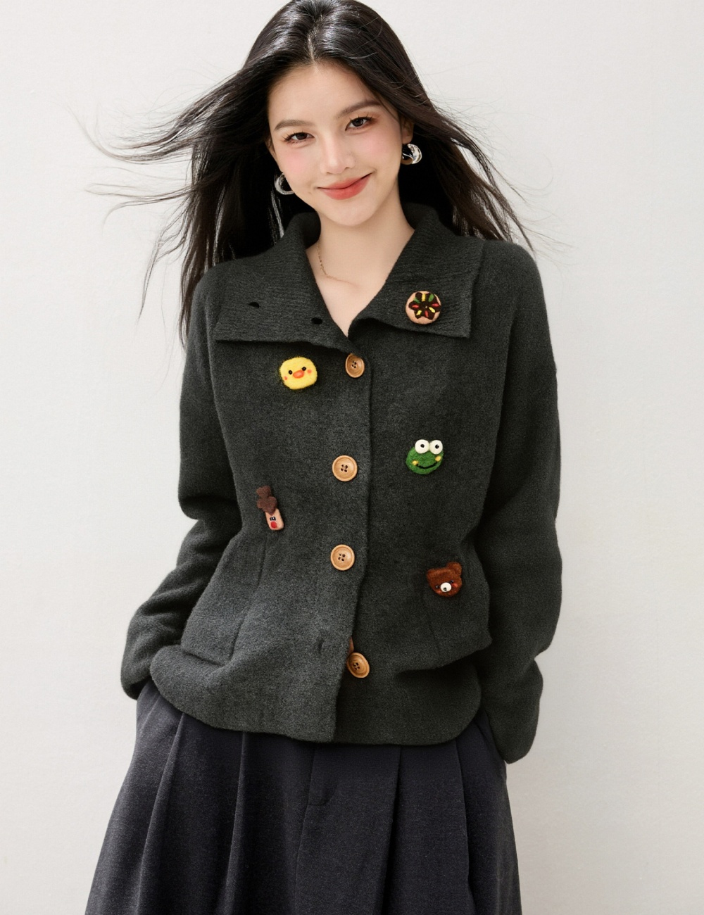 Loose lazy sweater thick lapel coat for women