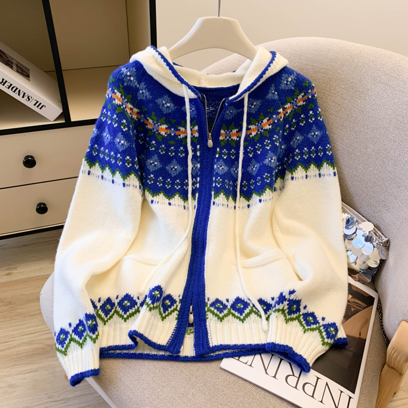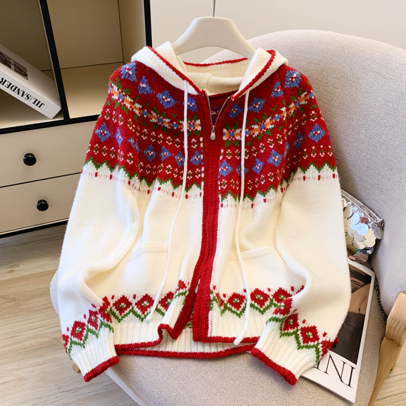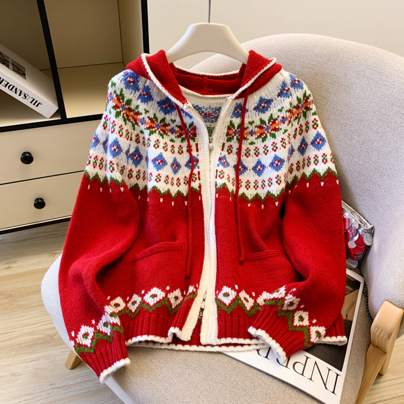 Loose red coat lazy hooded cardigan for women