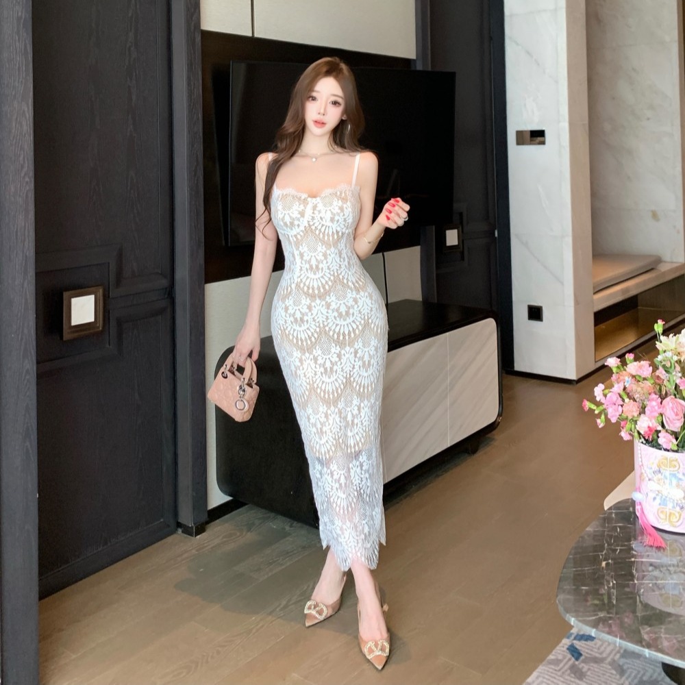 Nightclub sexy V-neck jumpsuit European style gauze dress
