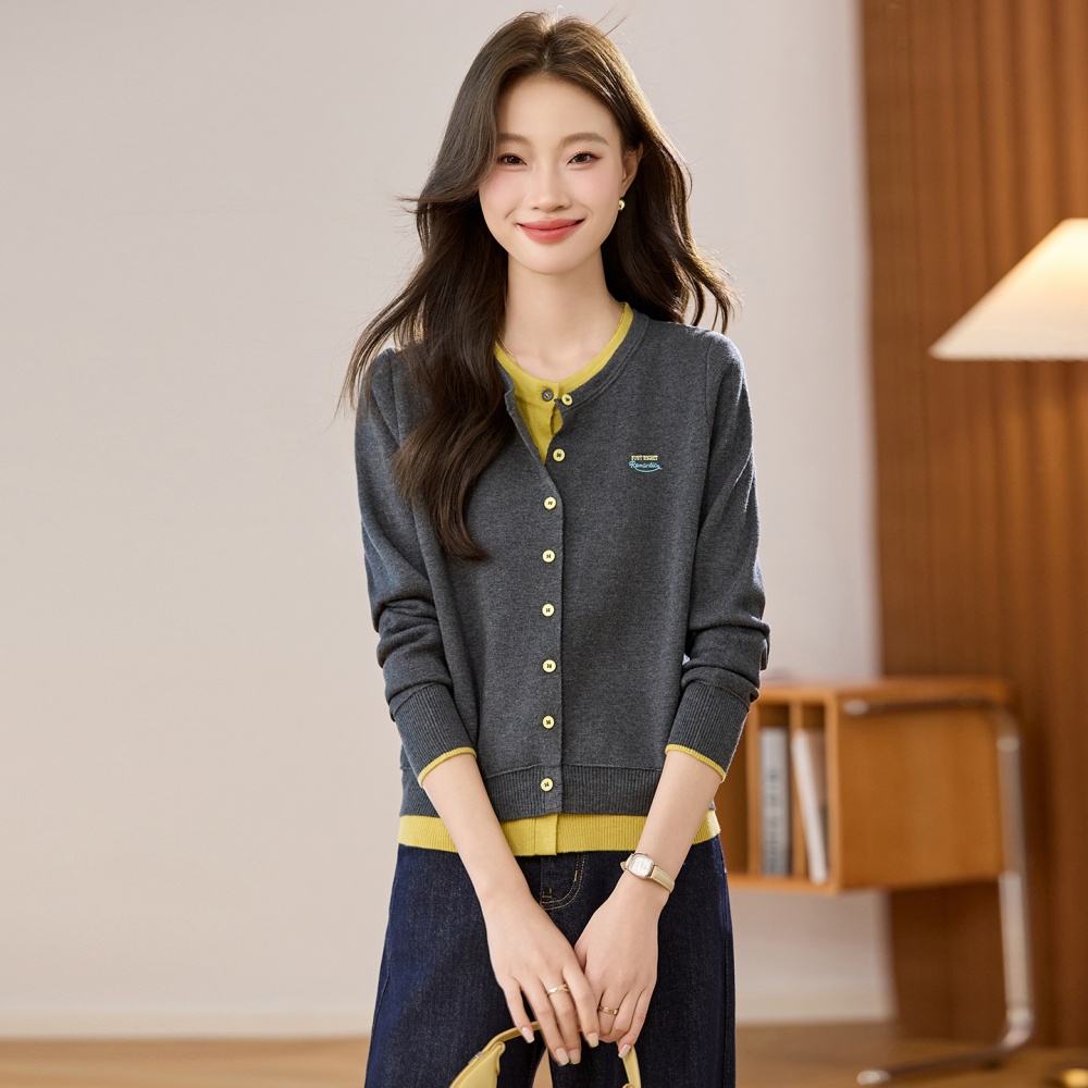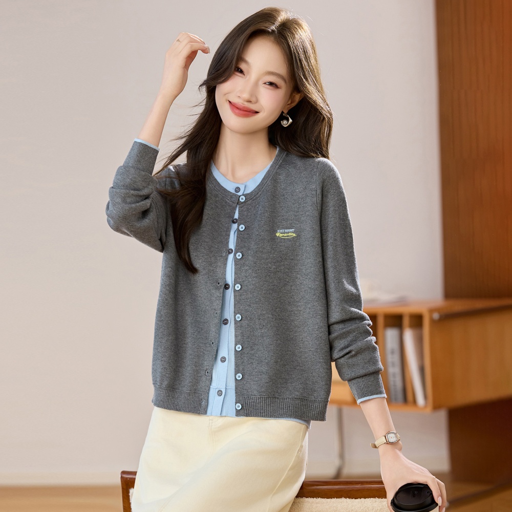 Pseudo-two embroidery coat outside the ride cardigan for women