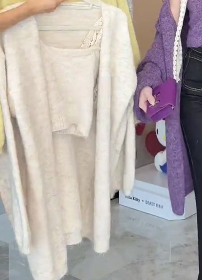 Purple chanelstyle vest knitted cardigan 2pcs set